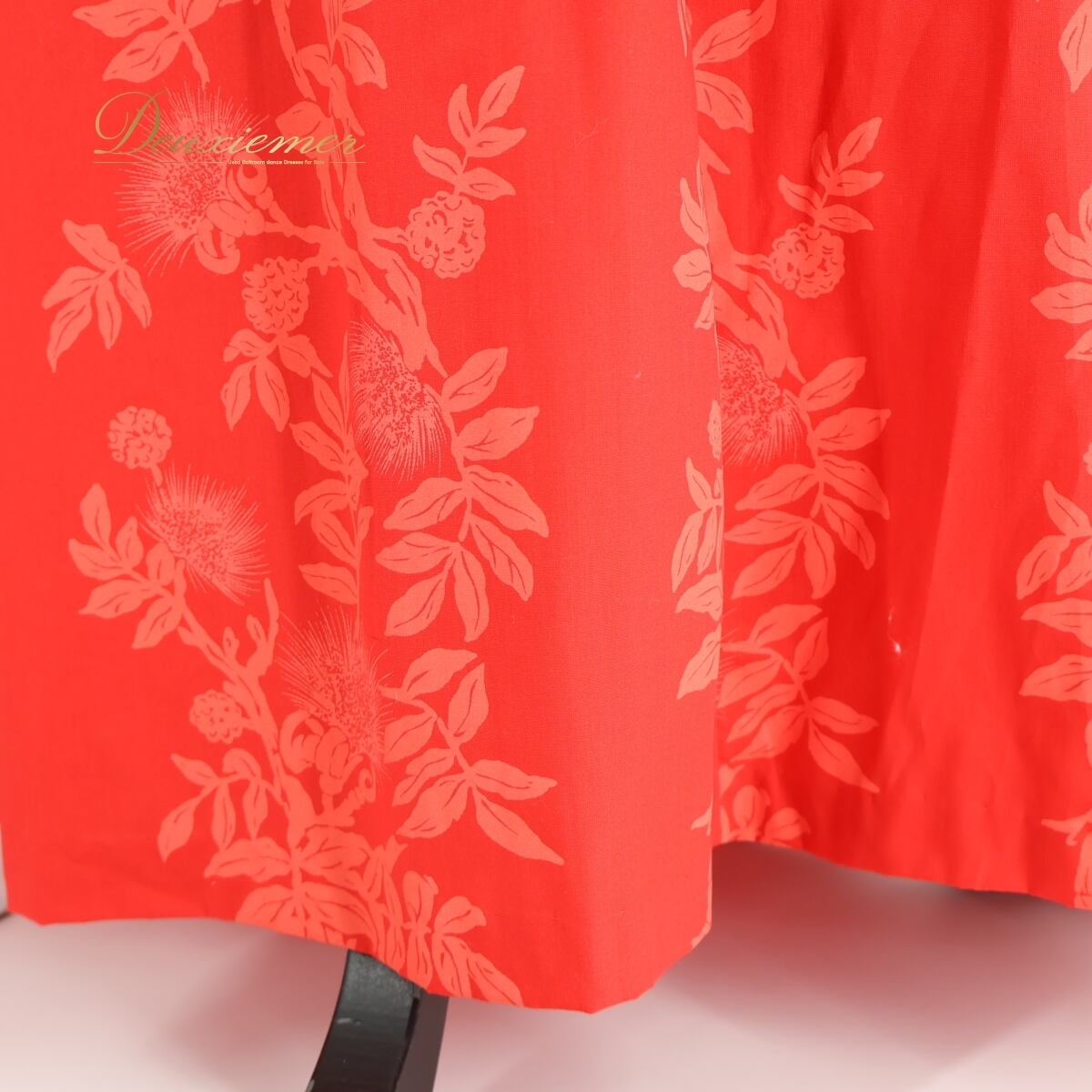 フラダンス 衣装 ワンピース ドレス レッド系 フラ ダンス マーメイドライン ハワイアン レフア柄 長袖 赤 アロハ 軽い MermaidLine MMJ 日本製 鮮やか 華やか 花柄 ②