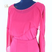 社交ダンス 衣装 ツーピース ワンピース ドレス クリエイトサン 上下セット ピンク レッスン 練習着 ピンク系 Create-Sun レース フリル 発表会 舞台 ダンスウェア おしゃれ ショッキングピンク 発表用 イベント用 ラインストーン付き レディース
