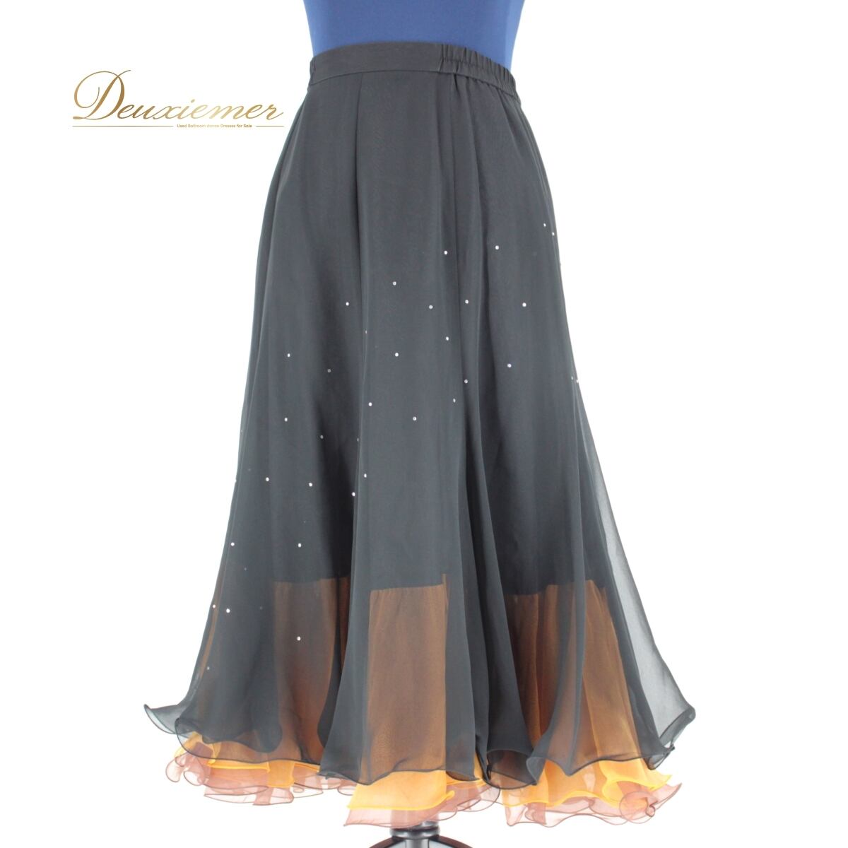 社交ダンス 衣装 スタンダード スカート 練習着 レッスンウェア パーティー ブラック系 ブラウン系 オレンジ系 黒 茶色 無地 シンプル ラインストーン スカート丈 77cm ウエスト 30.5cm 伸縮性 日本製 ダンスウェア フォーマル エレガント