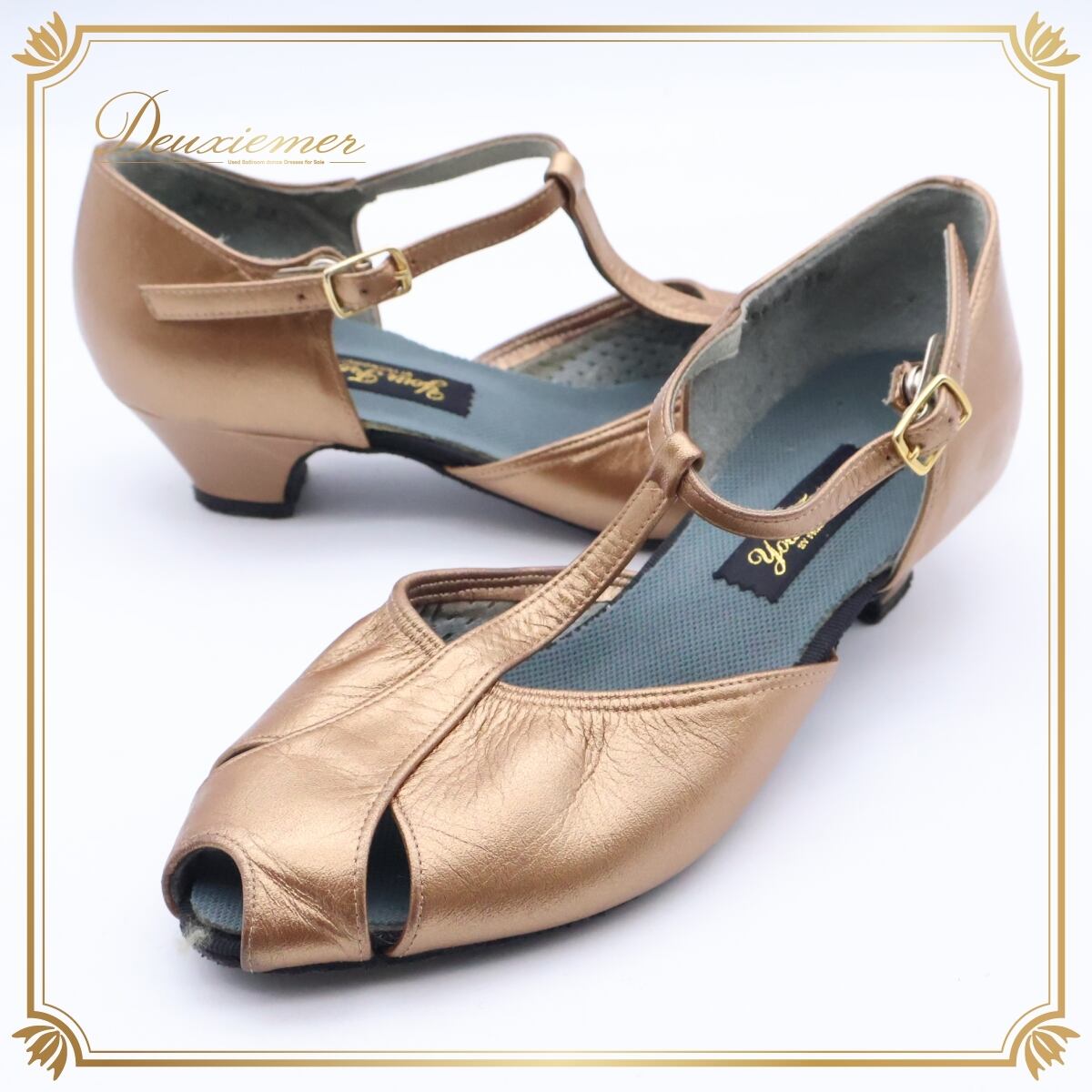 社交ダンス 衣装 23CM Your Friend ブラウン系 ゴールド系 ダンス シューズ レディース用 靴 ヒール 茶色 ラテン スタンダード 発表会 イベント 社交ダンスシューズ シューズ発表会 ダンスシューズ レディース靴 ゴールドダンス