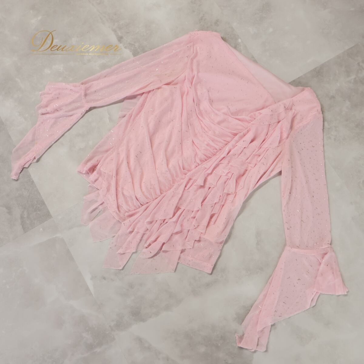 #社交ダンス #ダンス衣装 #トップス #ブラウス #フリル #淡いピンク #シルバー #可愛い #衣装 #ダンスファッション #パフォーマンス #ダンス #トルソー #サイズ #伸縮性 #ファッション #スタイル #オシャレ #ダンスイベント #ENUTSU