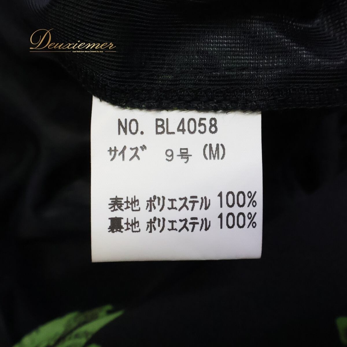 社交ダンス 衣装 ツーピース ワンピース ドレス セキネ 黒 黄緑色 M 花柄 上下セット レッスン 練習着 日本製 sekine ブラック系 グリーン系 おしゃれ フレアスカート 発表会 フォーマル かわいい レディース ドレスアップ