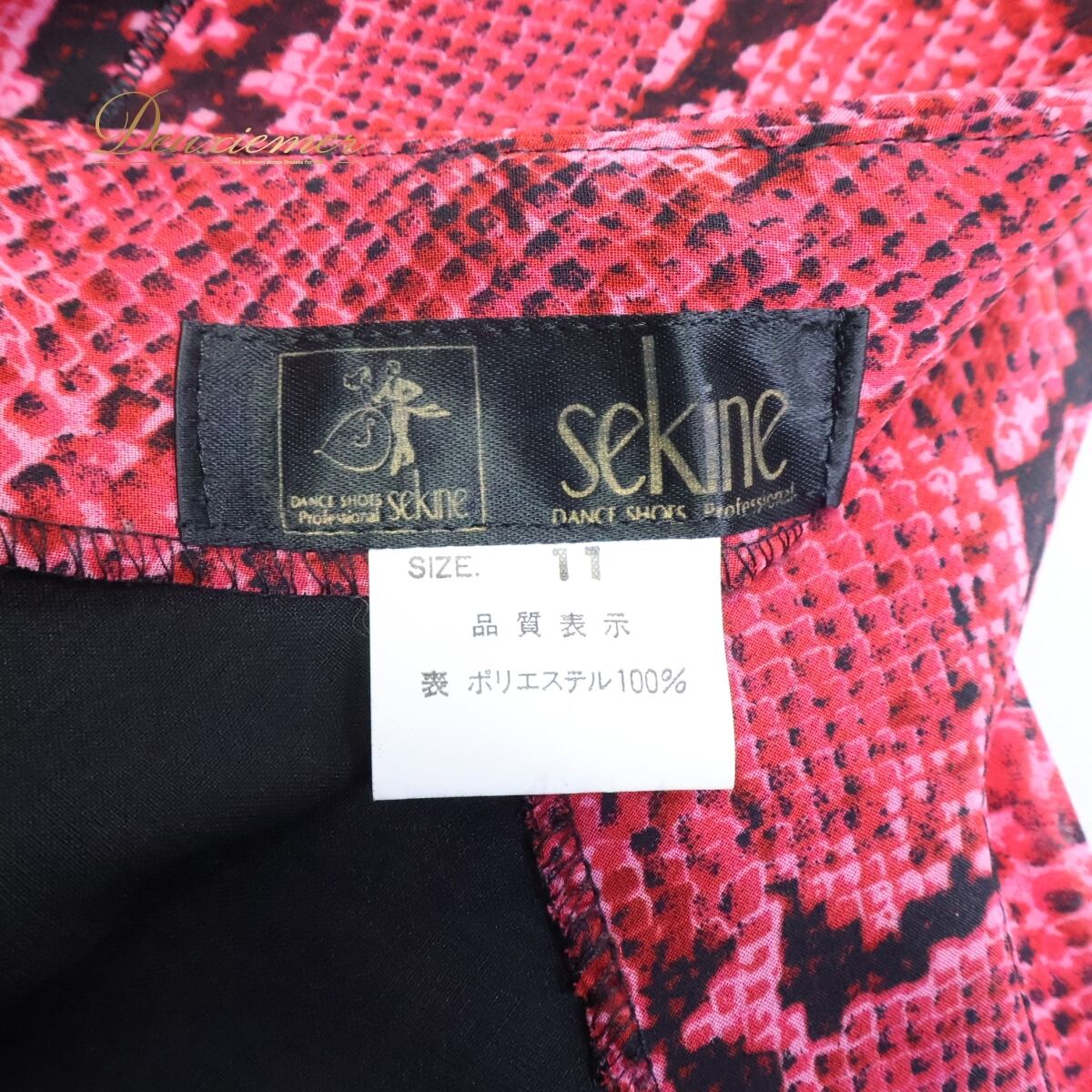 社交ダンス 衣装 ツーピース ワンピース ドレス セキネ 赤 パイソン柄 模様 上下セット レッスン 練習着 日本製 sekine レッド系 舞台 パーティー衣装 フォーマル レディース ダンスウェア ステージ衣装 社交ダンス用ドレス 蛇柄 おしゃれ
