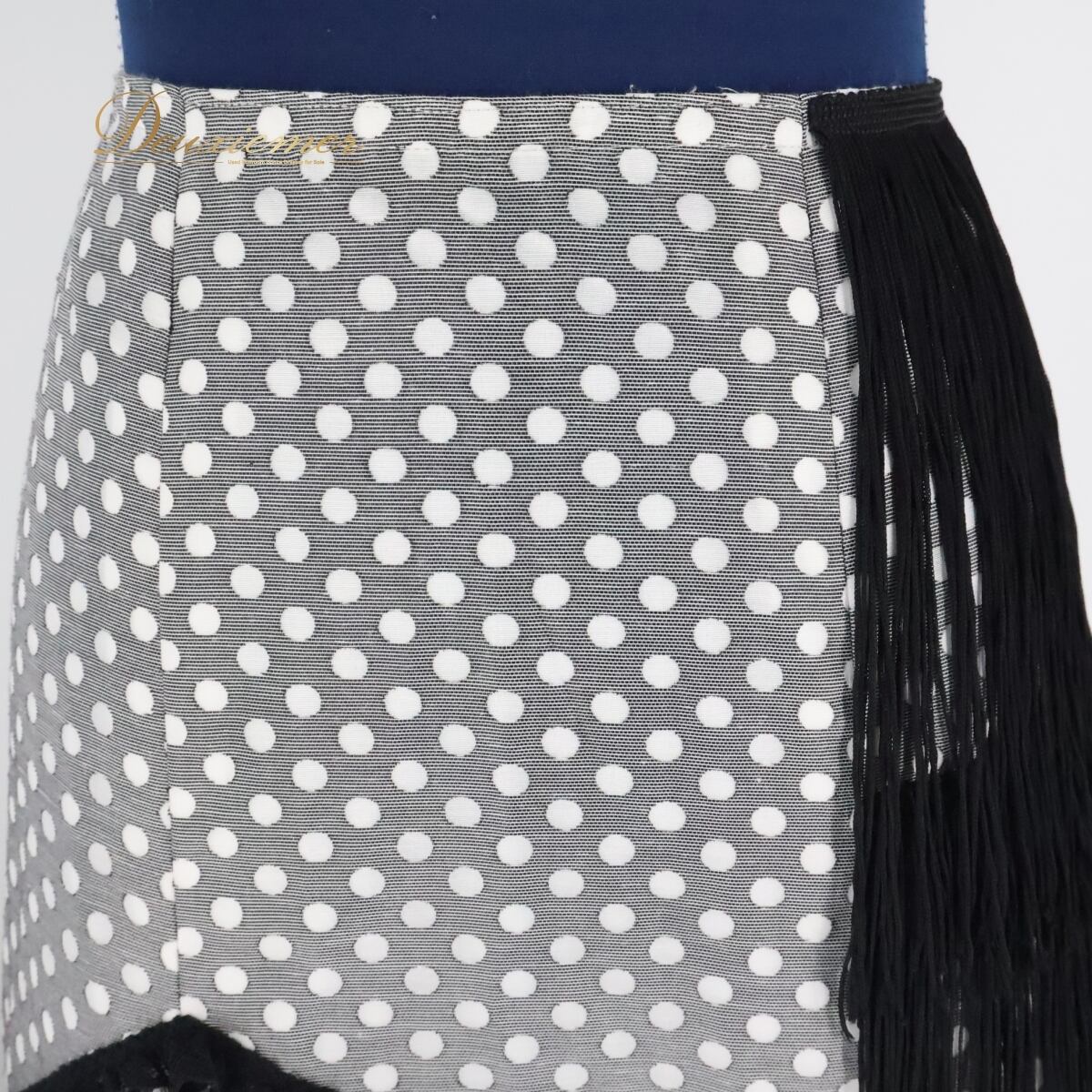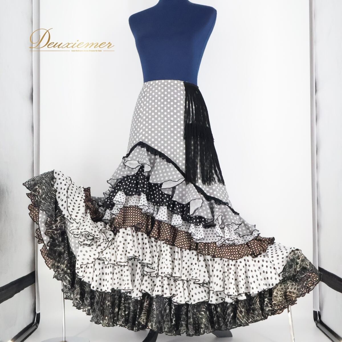 フラメンコ 衣装 ファルダ スカート ソニアジョーンズ SONIA JOHNES 黒 白 グレー 水玉 ドット ボランテ フリル ブラック系 フラメンコ スカート 女性用 コスチューム ドット柄 レース 装飾 シンプル おしゃれ かわいい デザイン
