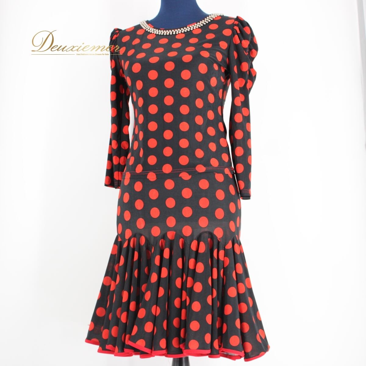 #社交ダンス衣装 #ダンスウェア #レトロファッション #可愛いデザイン #水玉衣装 #ビーズ装飾 #ブラックレッド #レディースファッション #パーティードレス #ダンスドレス #ストレッチ素材 #ウエストゴム #おしゃれコーデ #ダンススタイル #ファッションコーデ #エレガント #トルソーコーデ #舞台衣装 #ダンス衣装 #ENUTSU