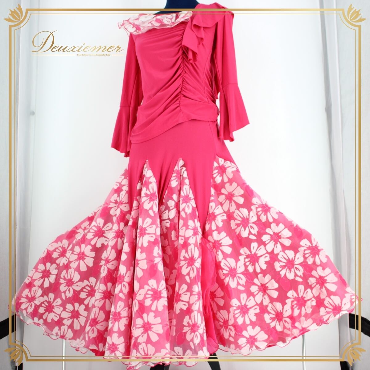 #社交ダンス #ダンス衣装 #セットアップ #花柄 #ファッション #ダンスコスチューム #女性用 #ダンススタイル #パーティーコーデ #ピンク #ホワイト #オシャレ #ウエストゴム #伸縮性 #トルソー #ダンスパフォーマンス #衣装 #ビジュアル #コーディネート #ENUTSU