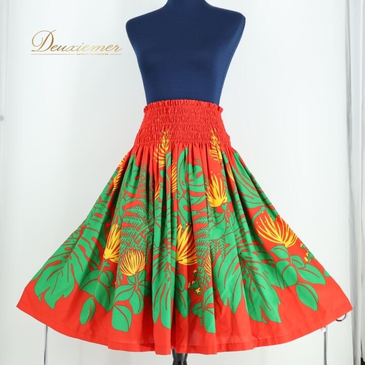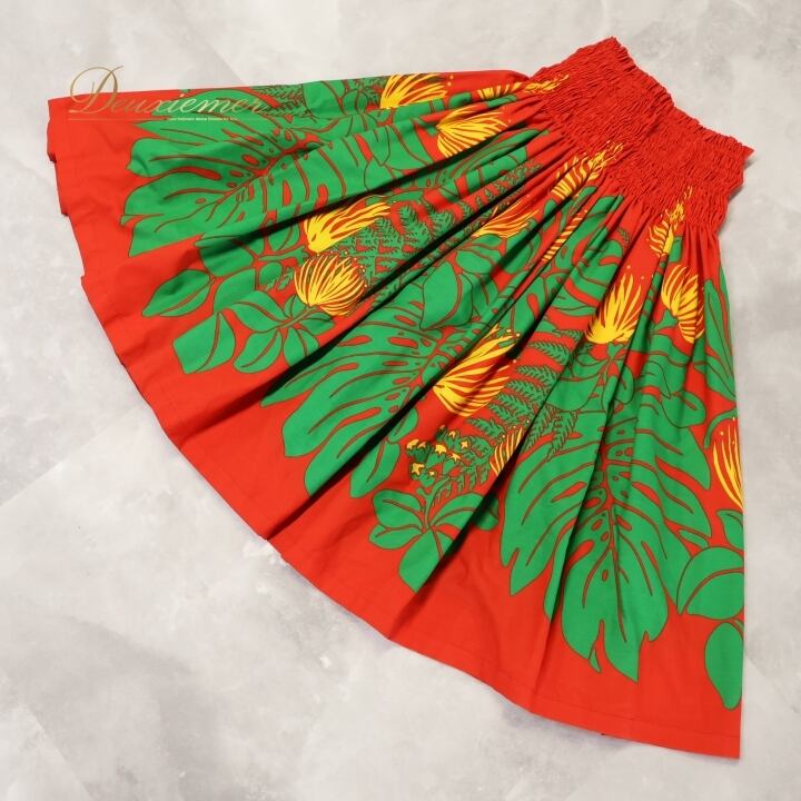 フラダンス 衣装 パウスカート レッド系 フラ ダンス アロハスタンダード ハワイアン モンステラ柄 シングル 赤 緑 黄 レッスン 花柄 鮮やか 明るい ALOHA STANDARDS 日本製 練習 アロハ ハワイアンプリント グリーン系 イエロー系
