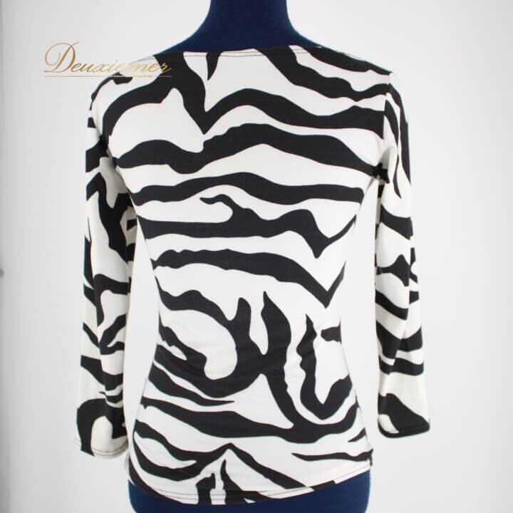 社交ダンス 衣装 スタンダード トップス レッスンウェア パーティー ブラック系 黒 leirena レイリーナ バイカラー ホワイト系 白 長袖 ゼブラ おしゃれ お洒落 ダンスウェア スポーツウェア 女性用 カジュアル ファッション ゼブラ柄