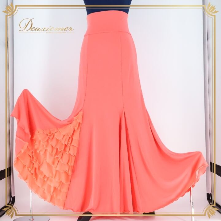 #フラメンコ #衣装 #ファルダ #スカート #コーラルピンク #ハイウエスト #ウエストゴム #伸縮性 #ダンス衣装 #フラメンコスカート #パフォーマンス #舞台衣装 #ファッション #セクシー #女性用 #トルソー #かわいい #おしゃれ #エレガント #ENUTSU