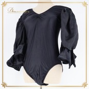 フラメンコ 衣装 レオタード トップス フリル 黒 レッスン 練習 袖あり スペイン製 無地 ブラック系 VISTA SPORT 社交ダンス バレエ フラメンコ衣装 舞台衣装 ダンスウェア 大きな袖 レディース コスチューム デザイン スタイリッシュ カジュアル スポーツ オシャレ