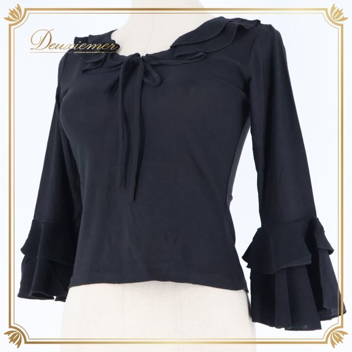 フラメンコ 衣装 トップス ブラウス 黒 フリル ブラック系 長袖 レース ダンス 舞台 レッスン 練習 襟 リボン かわいい デザイン 伸縮素材 動きやすい 体型カバー シンプル 襟付き ダンス用コスチューム フラメンコ衣装 レディース トップススタイル エレガント レディースファッション おしゃれ