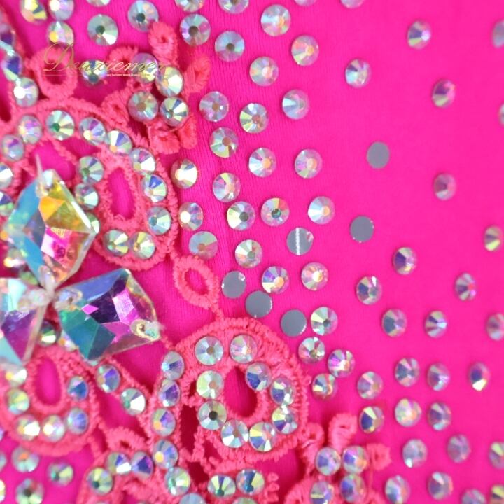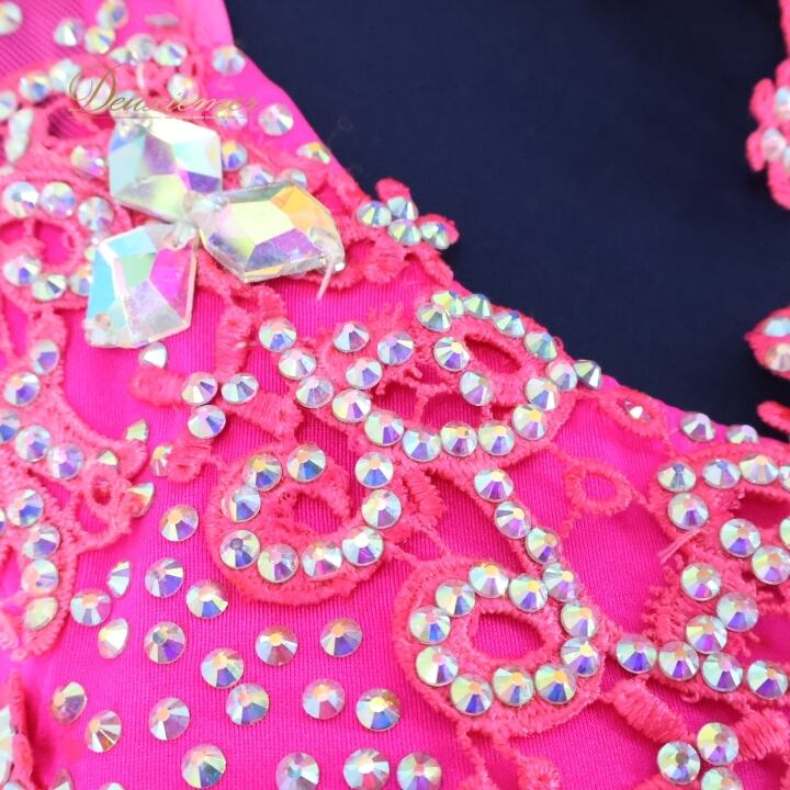社交ダンス 衣装 ラテン ドレス ラテンドレス ワンピース ピンク系 フリル レース デモ 競技用 濃いピンク かわいい ダンス 舞台 映える フリルデザイン 可愛いドレス デモ用ドレス 舞台衣装 発表会 ラテン衣装 ダンスパフォーマンス 女性用衣装 ダンス練習 衣装セット おしゃれ衣装 ラテンダンス ステージ衣装 鮮やかな色 レディースドレス 競技用ワンピース
