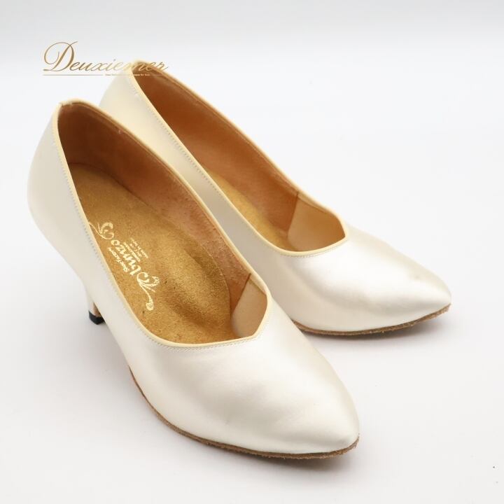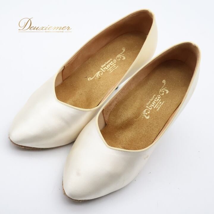 社交ダンス 衣装 22 1/2CM bunzo 白 ダンス シューズ レディース用 靴 ヒール ブンゾー 日本製 スタンダード ホワイト系 サテン ダンスシューズ レッスンシューズ ヒール靴 おしゃれ サテン生地 日本製 ダンスパーティー用