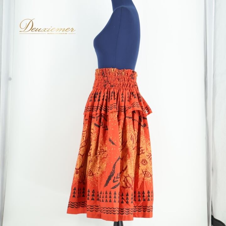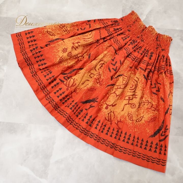 #フラダンス #パウスカート #ハナ #日本製 #オレンジ #ブラック #ホヌ柄 #ダンス衣装 #フラ #フラダンス衣装 #ウエストゴム #トルソー #かわいい #フラ女子 #ハワイアン #夏ファッション #アロハ #ビーチスタイル #柔らかい素材 #ダンス用品 #ENUTSU