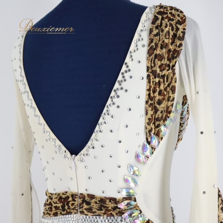 社交ダンス 衣装 スタンダードドレス スタンダード ドレス ワンピース フロート デモ 競技用 ダンス 白 ヒョウ柄 ホワイト系 Wish plus ダンス衣装 おしゃれ ヒョウ柄ドレス 競技用ワンピース かわいいデザイン スカート スタイリッシュ Mサイズ フォーマル