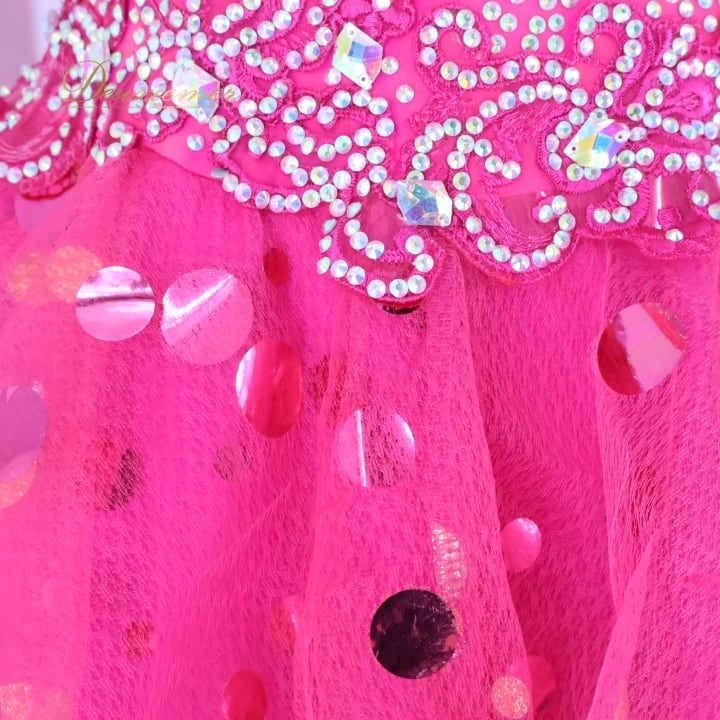 社交ダンス 衣装 ラテン ドレス ワンピース ラテンドレス フリル デモ 競技 長袖 ピンク系 発表会 パーティ キラキラ 水玉 デザイン フロア映え かわいい ドレスアップ おしゃれ 競技用 ダンスパーティ ステージ衣装 女子用 フリルスカート 華やか