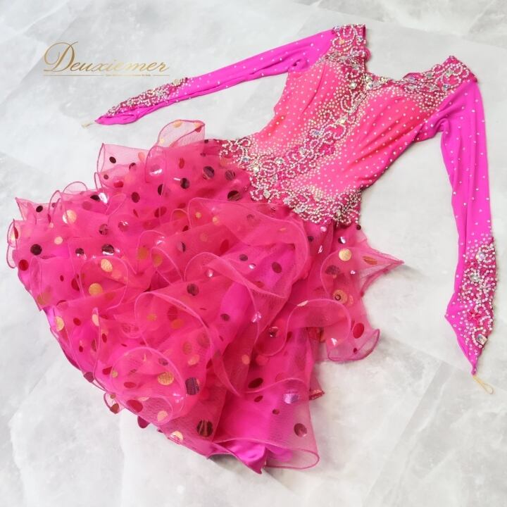 #社交ダンス #ラテンドレス #ダンス衣装 #ワンピース #ダンスコスチューム #ピンクドレス #フロア映え #水玉デザイン #トルソー #女性ファッション #ダンススタイル #おしゃれ #舞台衣装 #スポーツダンス #バレエ #ダンスレッスン #パーティードレス #動きやすい #ユニークデザイン #ENUTSU