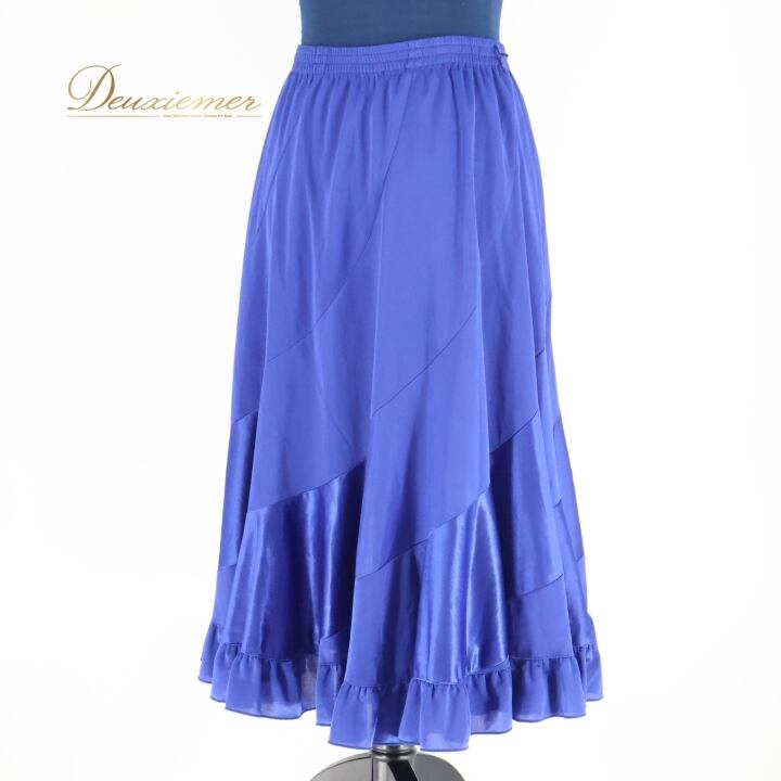 社交ダンス 衣装 スタンダード スカート ブルー系 サテン レース レッスン 練習着 青 社交ダンススカート フリル イベント 発表会 舞台 光沢 フリルスカート ダンス練習 フレアスカート 練習用 青色 スカート おしゃれ 輝き かわいいおしゃれ