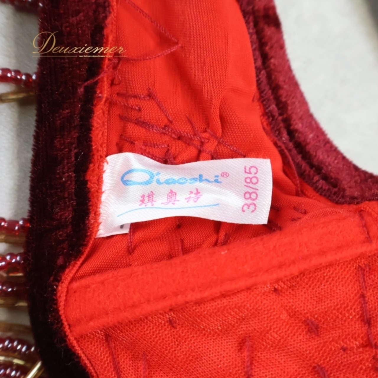 ベリーダンス オリエンタル 衣装 上下セット ワインレッド ゴールド Qiaoshi ビーズ スパンコールラメ 装飾 ラメ ベロア レース 発表会 ワインレッド系 ビーズ装飾 スパンコール衣装 ダンスコスチューム レディース おしゃれな衣装 アクセサリー付き