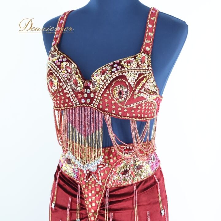 #ベリーダンス #オリエンタル衣装 #ダンス衣装 #ワインレッド #パフォーマンス #ラメ #ビーズ #豪華 #トップス #スカート #アクセサリー #コスチューム #女性用 #ダンス #イベント衣装 #シルエット #トルソー #美しい #ファッション #ENUTSU