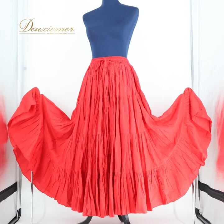 ベリーダンス 衣装 ジプシースカート Garam garam 赤 18ヤード ロング フリル レッド系 ガラムガラム 無地 スカート 発表会 フレア スカート ボリューム 伸縮性 ロングスカート パーティー コスチューム ルーズ フリルスカート