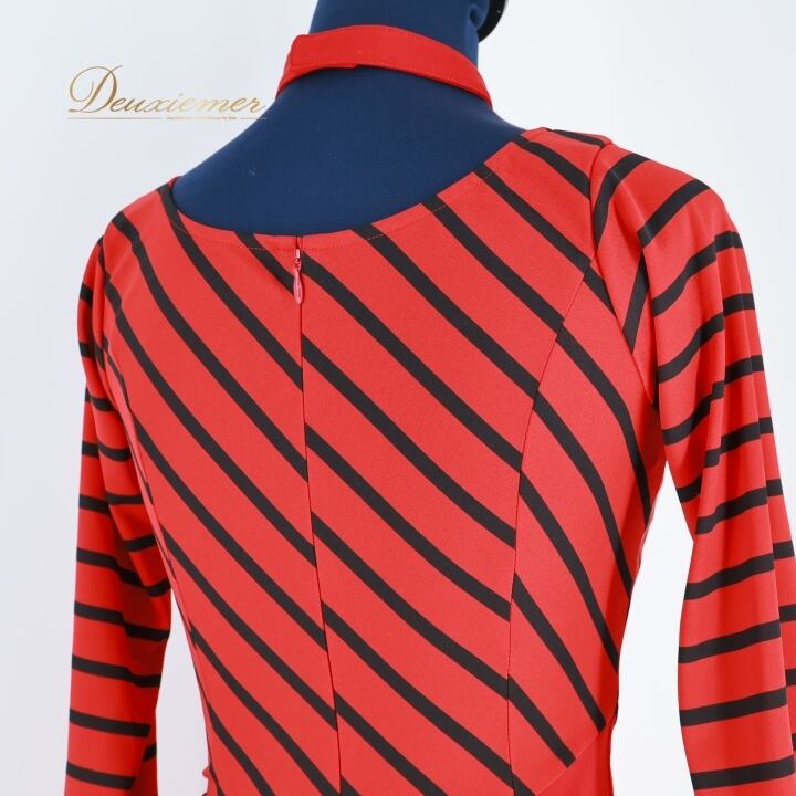 社交ダンス 衣装 スタンダードドレス スタンダード ドレス ワンピース パーティドレス パーティ 発表会 赤 黒 Sanline サンリーヌ 日本製 ブラック ストライプ 伸縮 レッド系 ストレッチ 舞台 ダンス スタイリッシュ デザイン 動きやすい 踊りやすい イベント 衣装ドレス ファッション ダンスウエア ダンス衣装 レディース ドレス ワンピース 社交ダンス用 発表会用 コスチューム