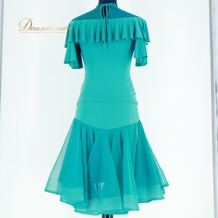 #社交ダンス #ダンス衣装 #ツーピース #セットアップ #ダンスウェア #レッスン用 #パーティ用 #青緑 #お洒落 #伸縮性 #ウエストゴム #スカート #トップス #女性用トルソー #ダンスアメリカ #衣装 #ファッション #ダンススタイル #フィットネス #ENUTSU