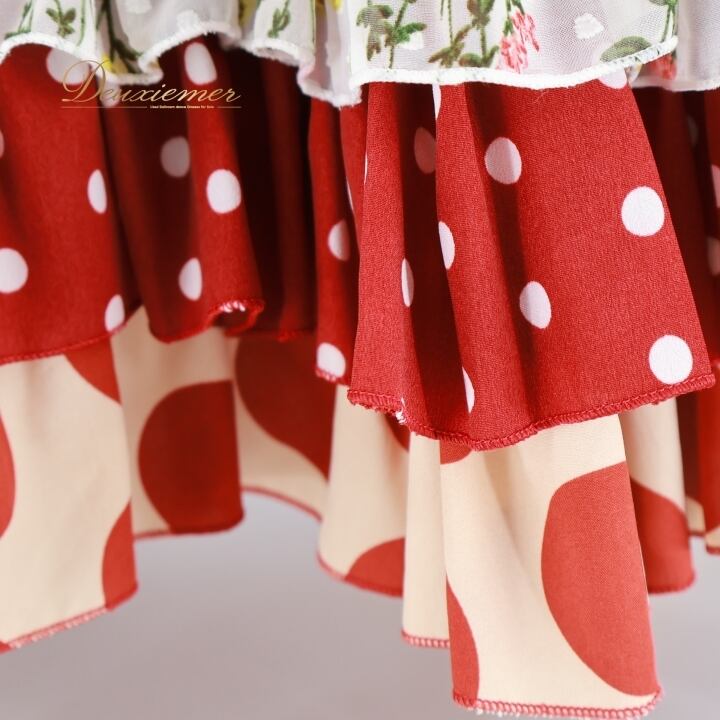 ▽段々ボランテのドットと花柄がかわいいデザイン