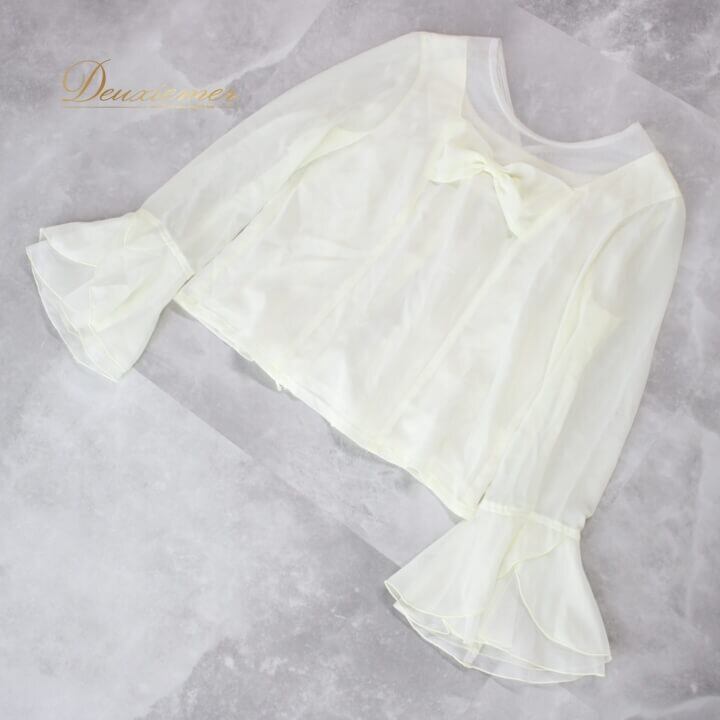 ▽胸元のリボンデザインがアクセント