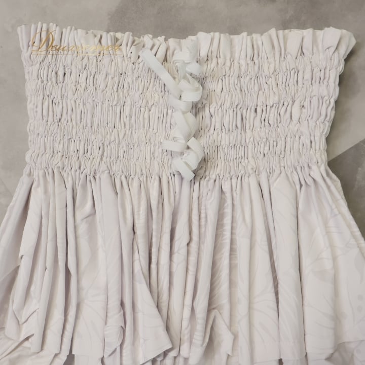 フラダンス 衣装 パウスカート ホワイト系 フラ ダンス 白 モンステラ柄 ハワイアン シングル 明るい 爽やか 葉っぱ柄 レッスン アロハ ハワイアンプリント 練習 ダンス衣装