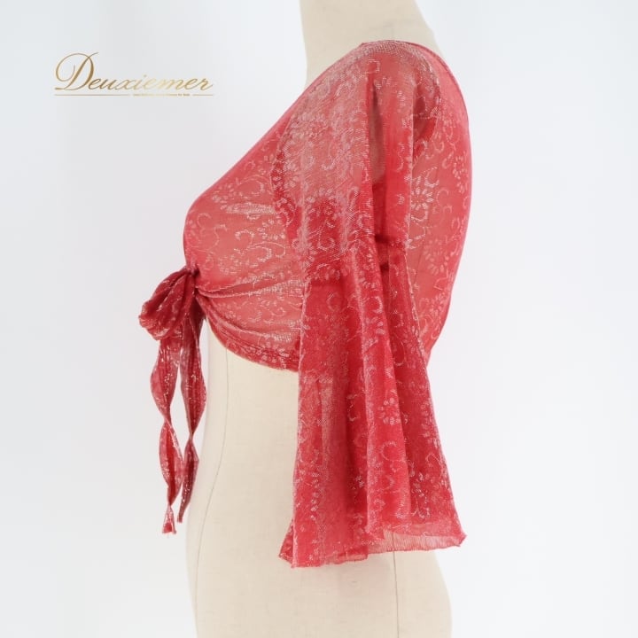 フラメンコ 衣装 ブラウス トップス レッスン 練習着 レッド系 赤 リボン 伸縮 ストレッチ 透け感 軽い 薄い レース デザイン フォーマル おしゃれ かわいい ダンス フリンジ ショート丈 女性用 カジュアル 発表会 衣装用