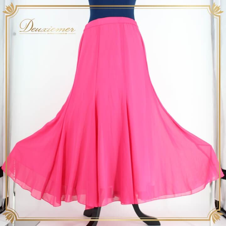 社交ダンス 衣装 スタンダード スカート パーティー レッスンウェア 練習着 無地 シンプル 派手 ピンク系 Sanline サンリーヌ ビビッドピンク かわいい 鮮やか フレア スカート レディース ダンスウェア 発表会 おしゃれ 舞台用