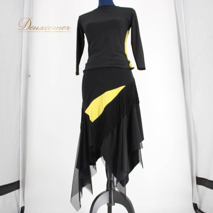 社交ダンス 衣装 スタンダード セットアップ ツーピース パーティー レッスンウェア 練習着 無地 シンプル ブラック系 黒 イエロー系 黄色 ICHIOKU イチオク バイカラー ラインストーン 長袖 伸縮性 袖あり ゴムウエスト 練習着用 おしゃれ