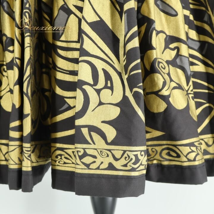 #フラダンス #パウスカート #エムエムジェイ #日本製 #ダンス衣装 #ウエストゴム #花柄 #ブラックグレーゴールド #フラダンス好き #衣装 #おしゃれ #かわいい #ダンスファッション #トルソー #サイズフリー #ボヘミアン #リゾートスタイル #夏のファッション #フラダンススタイル #ENUTSU
