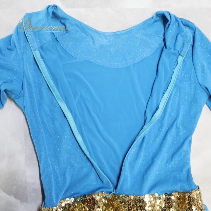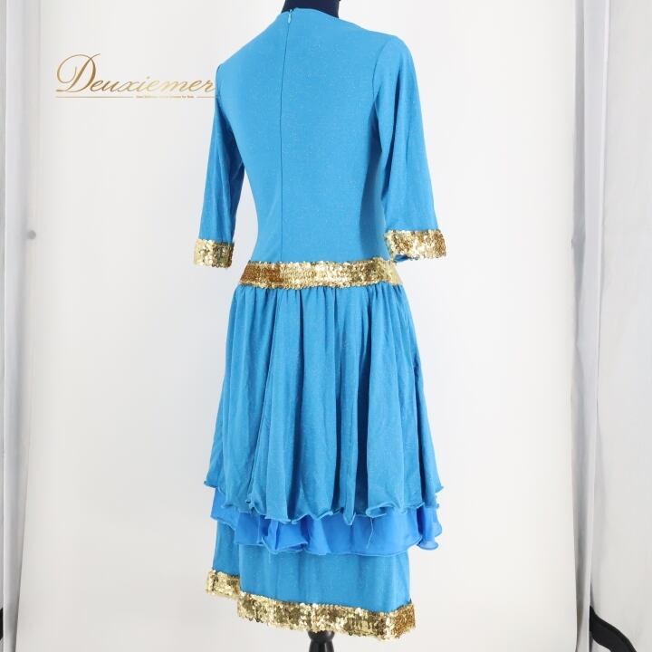 ベリーダンス 衣装 ワンピース ドレス 水色 ゴールド スパンコールラメ レッスンウェア 練習着 ブルー系 ラメ フリル コスチューム イベント スパンコール フリル付き おしゃれ 練習用 ダンスウェア レディース エレガント かわいい