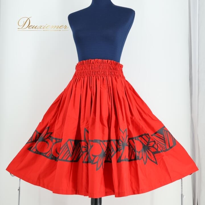 フラダンス 衣装 パウスカート レッド系 フラ ダンス ココエミリー 赤 黒 シングル ハワイアン レッスン 鮮やか シンプル アロハ CoCoEmily 日本製 ハワイアンプリント 練習 スカート ふんわり ブラック系