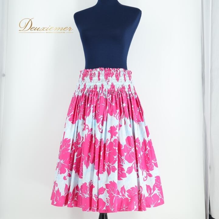 フラダンス 衣装 パウスカート ブルー系 フラ ダンス 花柄 メネフネプランテーション ハワイアン シングル 水色 白 ハイビスカス柄 MENEHUNE PLANTETION 日本製 爽やか 明るい アロハ ピンク系 ホワイト系