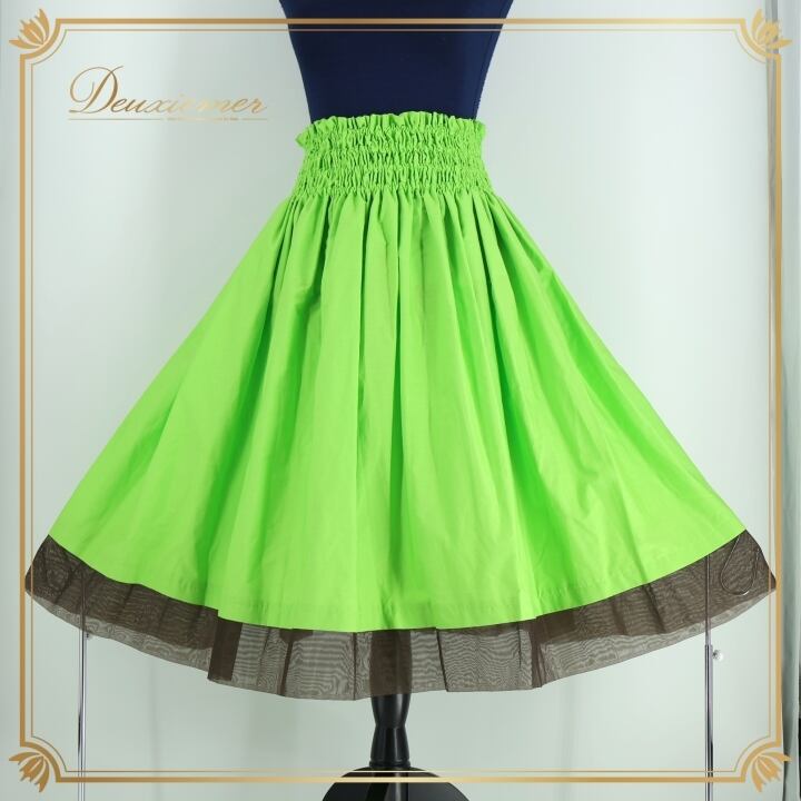 フラダンス 衣装 パウスカート グリーン系 フラ ダンス シングル 無地 黄緑 茶 シンプル ハワイアン ブルーヘブンカンパニー 明るい アロハ オーガンジー 透け感 ふんわり スカート 軽い BLUE HEAVEN COMPANY ブラウン系