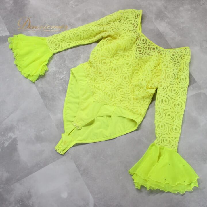 #社交ダンス #ダンス衣装 #ダンストップス #蛍光イエロー #レース素材 #ラインストーン #ダンスファッション #ダンススタイル #踊る #ダンスウェア #トップス #女性用衣装 #丈短め #伸縮性 #動きやすい #ダンスイベント #パフォーマンス衣装 #ドレスコード #社交ダンス衣装 #ダンス初心者 #ENUTSU