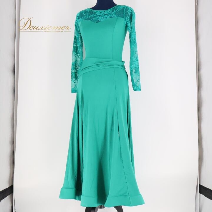 社交ダンス 衣装 スタンダード ドレス ワンピース 緑 グリーン系 レース パーティドレス パーティ 伸縮 綺麗 長袖 動きやすい 女性用 おしゃれ ダンス用 フォーマル 高級感 発表会