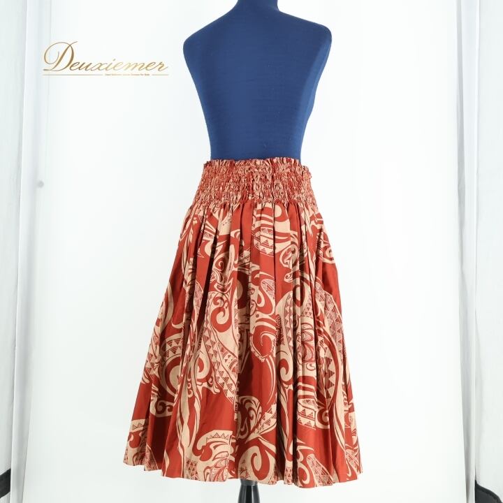 フラダンス 衣装 パウスカート 赤茶色系 フラ ダンス ホヌ柄 シングル レッスン 練習 アロハ ココエミリー ハワイアン ふんわり スカート CoCoEmily 日本製 落ち着いた色 亀 ハワイアンプリント レッド系 ブラウン系