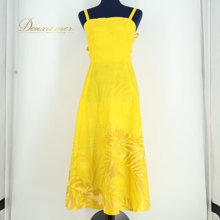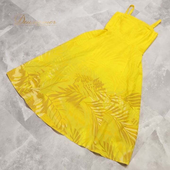 フラダンス 衣装 ワンピース ドレス イエロー系 フラ ダンス マーメイドライン 黄 キャミソール ハワイアン 明るい 華やか 葉っぱ柄 軽い ハワイアンプリント MermaidLine MMJ エムエムジェイ