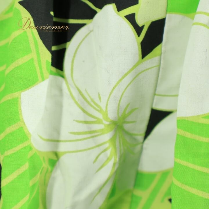 フラダンス 衣装 パウスカート グリーン系 フラ ダンス 花柄 黄緑 白 黒 パウスカートショップ シングル レッスン 練習 爽やか 明るい 日本製 ハワイアン アロハ スカート ふんわり ハワイアンプリント ホワイト系 ブラック系