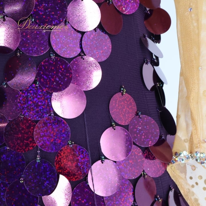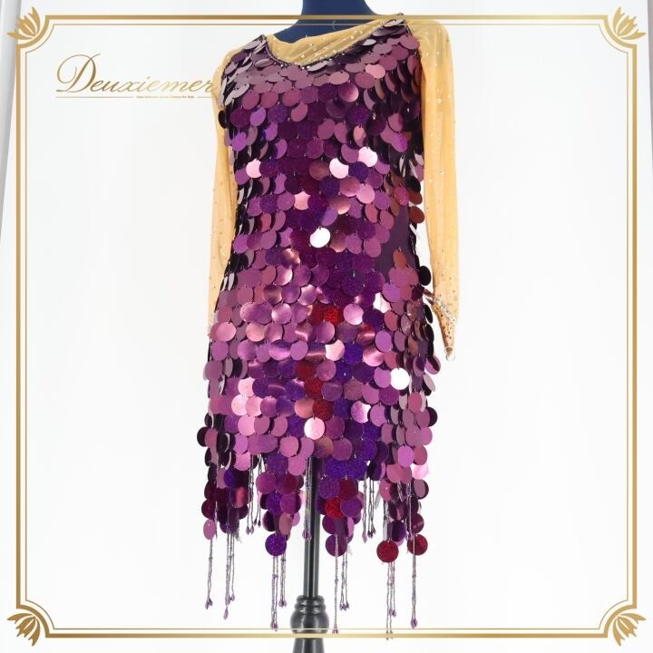 社交ダンス 衣装 ラテン ドレス ワンピース ラテンドレス パーティ 装飾 デモ パーティ 紫 パープル系 キラキラ 揺れる 軽い 素材 おしゃれ 反射 装飾 動きやすい 伸縮性 発表会 競技用 フェス