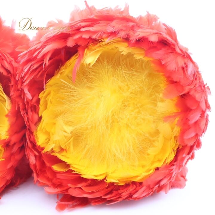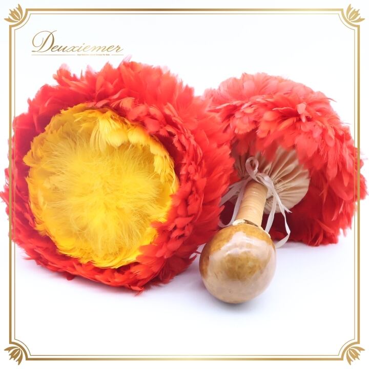 フラダンス ウリウリ マラカス 小物 小道具 楽器 赤 朱色 黄色 ダンス タヒチアン 分離型 羽 ファー レッド系 イエロー系 民族舞踊 舞台 ウリウリ マラカス ハワイアン アロハ 楽器 赤系 羽根 ファー付き 文化用品 舞台小物 ダンス小道具 音楽