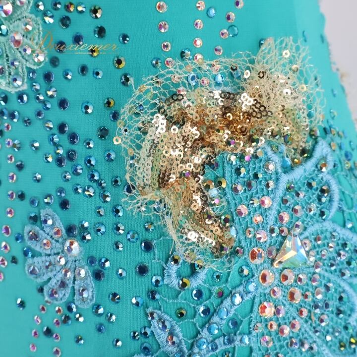 社交ダンス 衣装 スタンダード ドレス スタンダードドレス ワンピース フロート レース ホースヘア デモ 競技用 舞台 パーティ グリーン系 ブルー系 緑 青 美しい 色 おしゃれ かわいい 女性用 フレア スカート ドレスアップ ダンスイベント 社交ダンス衣装 派手 キラキラ パーティードレス