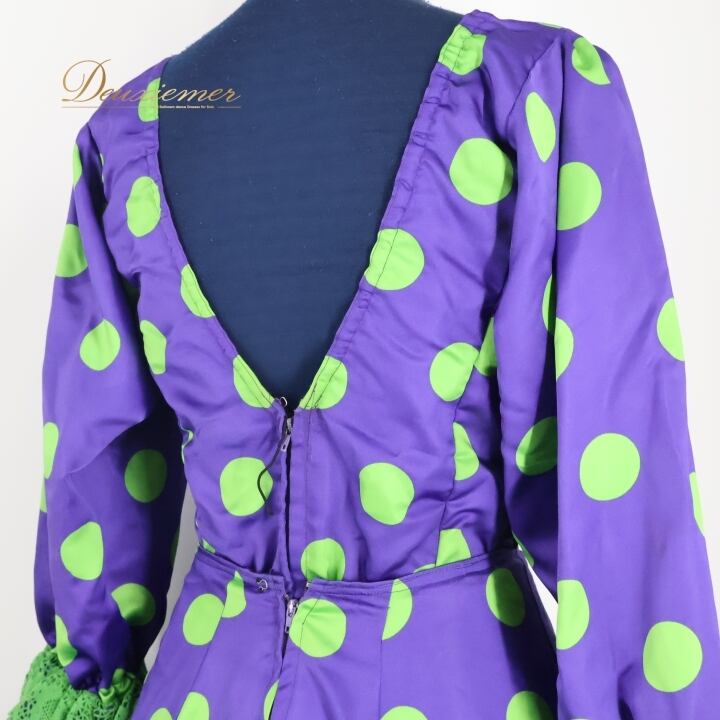 フラメンコ 衣装 トップス ファルダ スカート ツーピース セットアップ 紫 緑 フリル レース ボランテ 水玉 ドット 柄 パープル系 ボリューム スカート パーティー コスチューム ダンス 衣装 女性用 フリフリ カラフル フェスティバル かわいい おしゃれ ステージ衣装