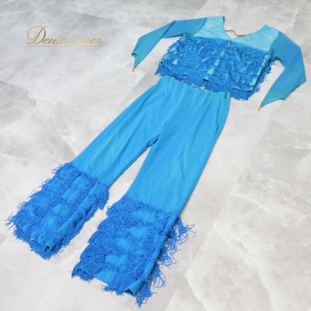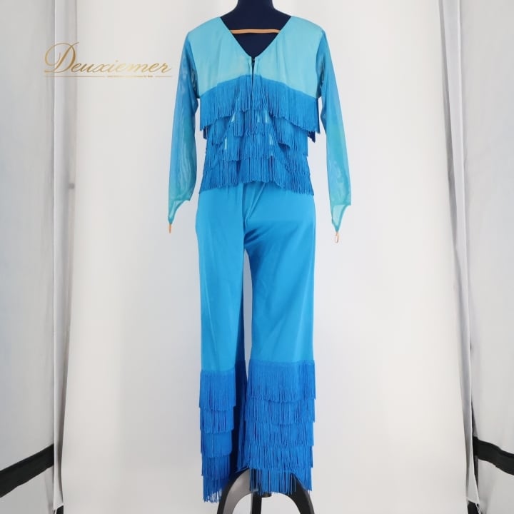 ダンス 衣装 チャコット Chacott トップス ブラウス パンツ ズボン ジャズ 社交ダンス 舞台 パーティ 発表会 ツーピース セットアップ 上下セット 青 フリンジ ブルー系 ジャズダンス 社交ダンス 衣装 発表会用 フリンジ付き おしゃれ パーティ用 コスチューム 柔らかい プロパフォーマンス 目を引く デザイン エレガント