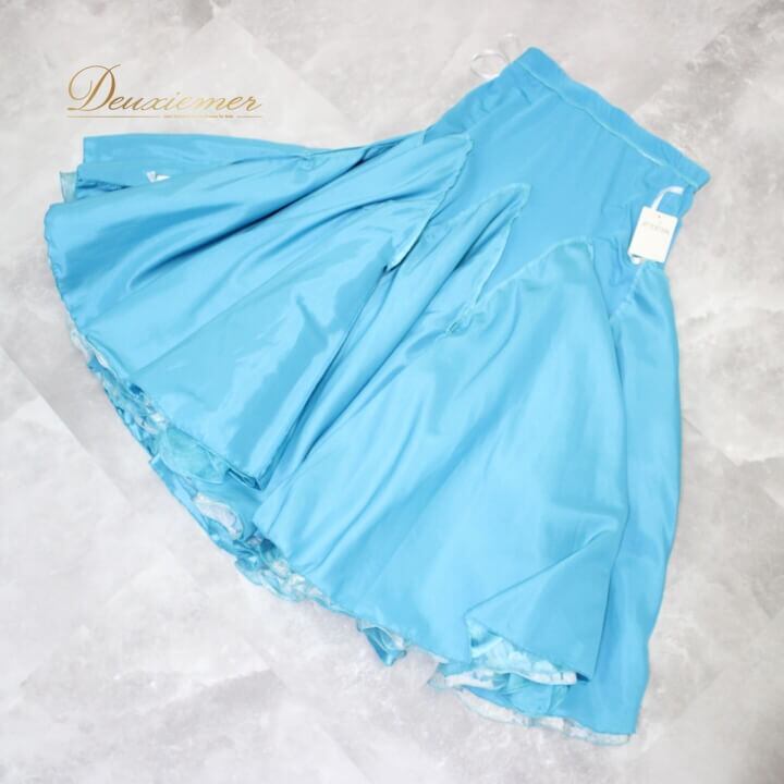 #社交ダンス #ダンス衣装 #スカート #花柄 #ライトブルー #ウエストゴム #三層スカート #伸縮性 #ダンスファッション #チュニック #トルソー #女性用衣装 #パーティー衣装 #カジュアルスタイル #オシャレ #ダンスパーティー #手作り衣装 #フィット感 #スポーツウェア #ファッション #ENUTSU
