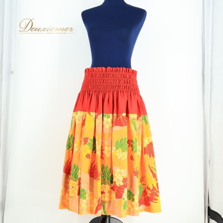 フラダンス 衣装 パウスカート イエロー系 フラ ダンス シングル レッスン 花柄 黄 赤 緑 山吹色 ハワイアン 華やか 明るい アロハ ハワイアンプリント 練習 レッド系 グリーン系